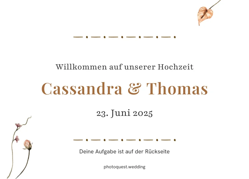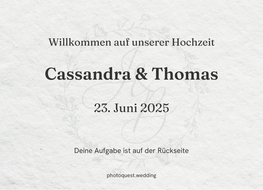 Eure Gäste entdecken ihre persönliche Foto-Mission. Jede Karte hat einen einzigartigen QR-Code, der sie direkt zur Aufgabe führt.